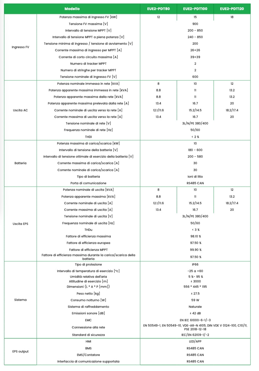 The three-phase Goneo hybrid inverter, developed for solar storage in Italian private homes, guarantees peak protection, silent operation, generator adaptability, versatile operating modes, reliable and uninterrupted power supply, and maximum safety and reliability.