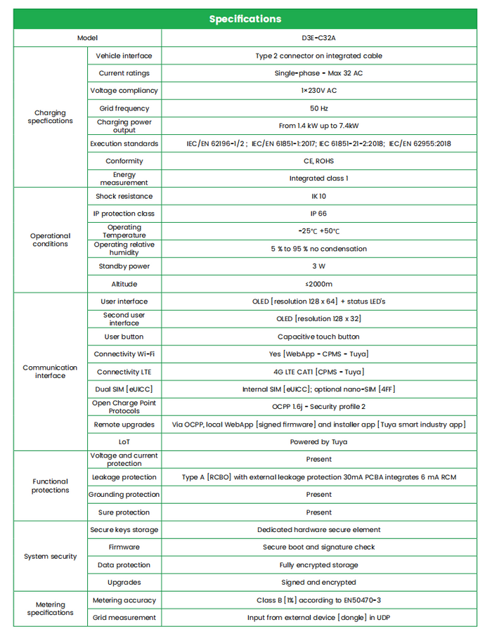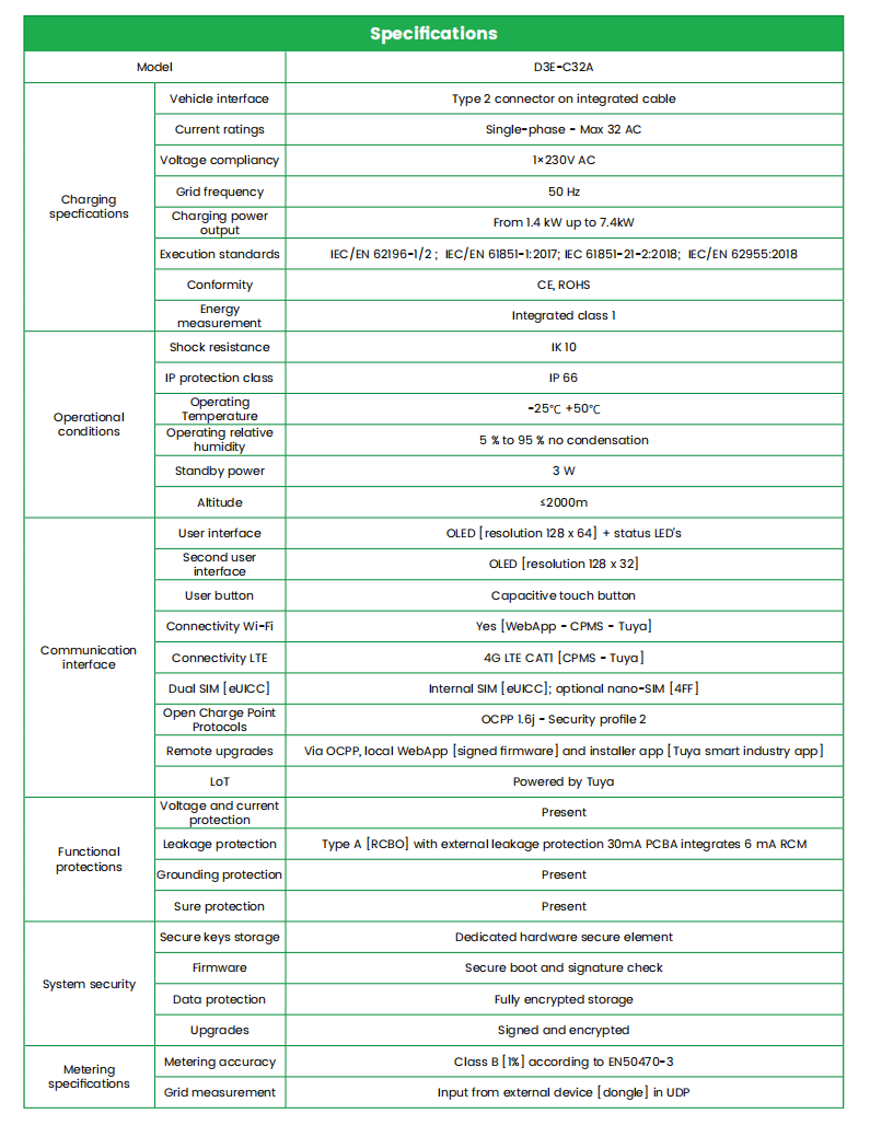 È dotato di un sistema di protezione della sicurezza completo. In termini di protezione di base, presenta molteplici protezioni a nuclei tra cui sovracorrente, sovratensione, sottotensione, surriscaldamento, perdite, messa a terra, protezione dai fulmini e cortocircuito, che possono gestire anomalie comuni durante il processo di ricarica.
